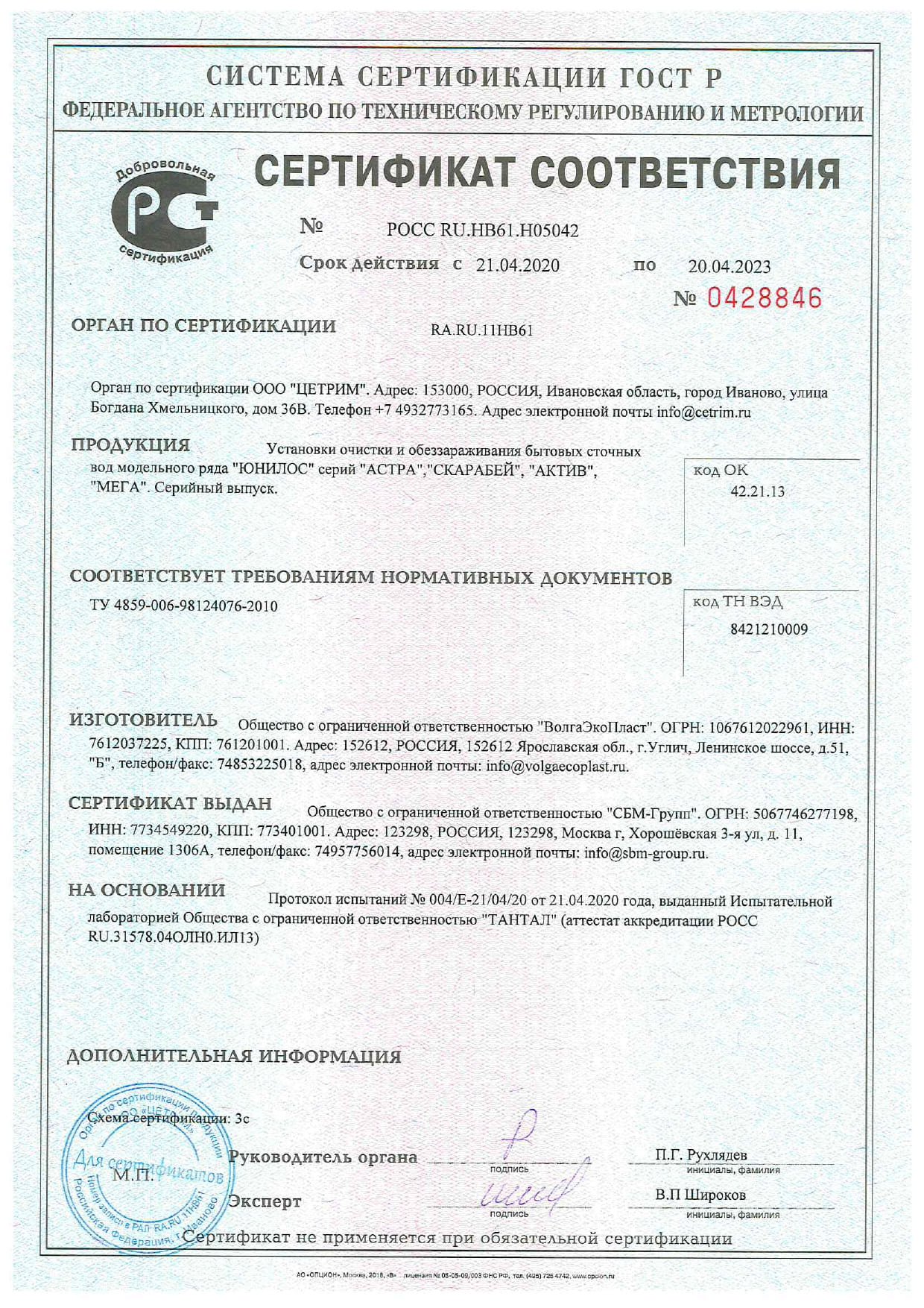 Сертификаты и экспертные заключения