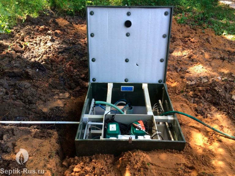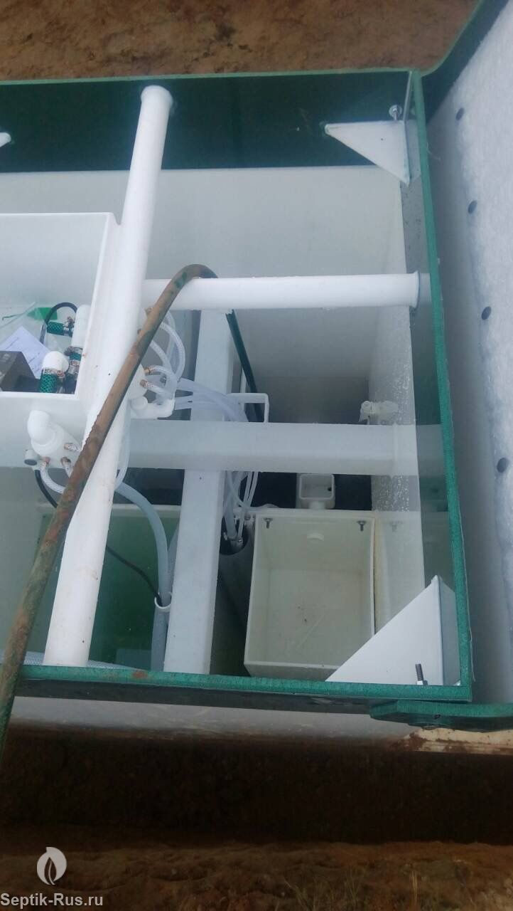 Подводящая труба должна входить в емкость станции на глубине 45 - 85 см, отводящая может быть расположена в 60 см от поверхности грунта. Срок эксплуатации септика – более 50 лет.