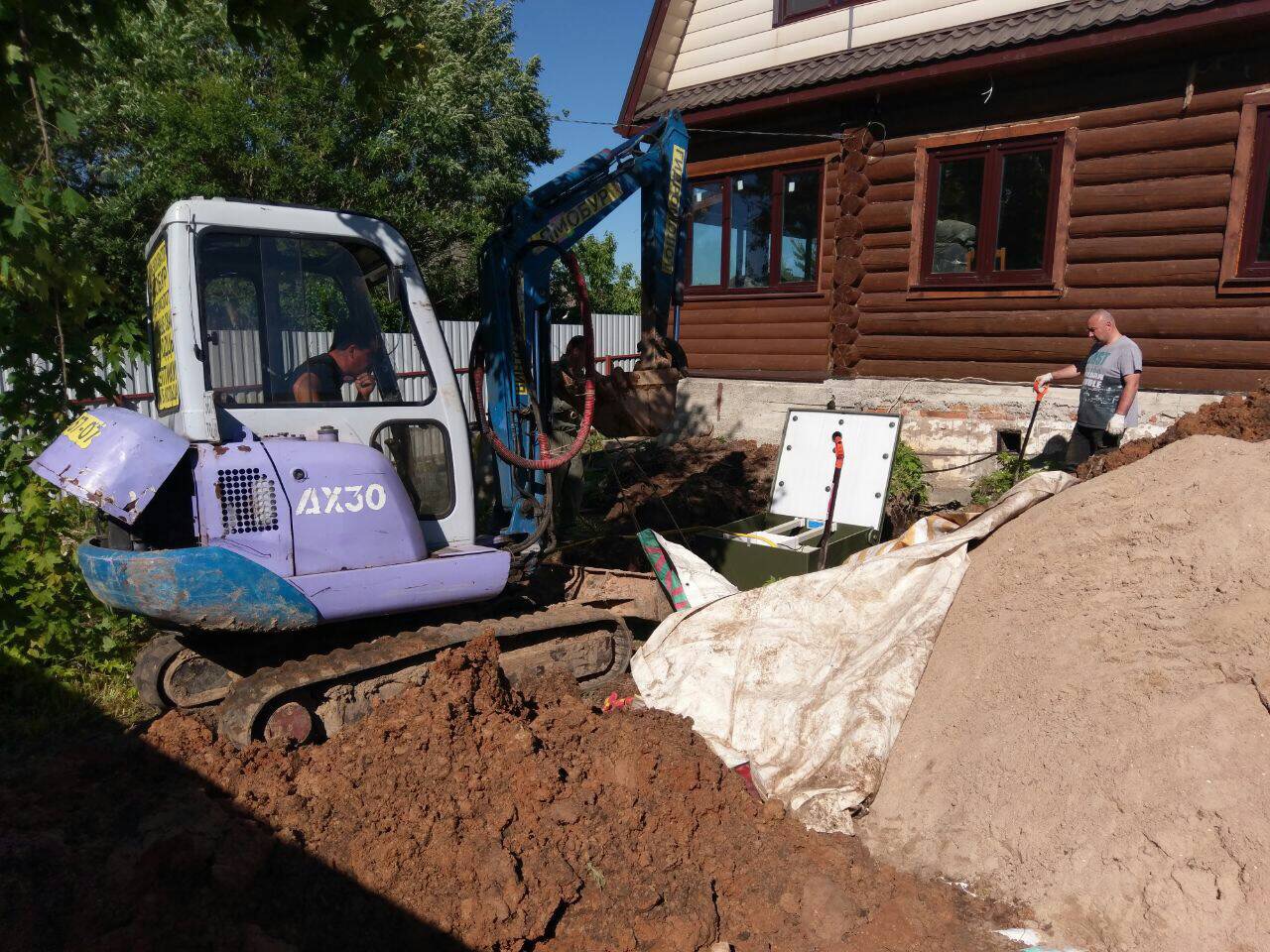 Устройство подводящих / отводящих траншей с прокладкой канализационных труб и кабелей.