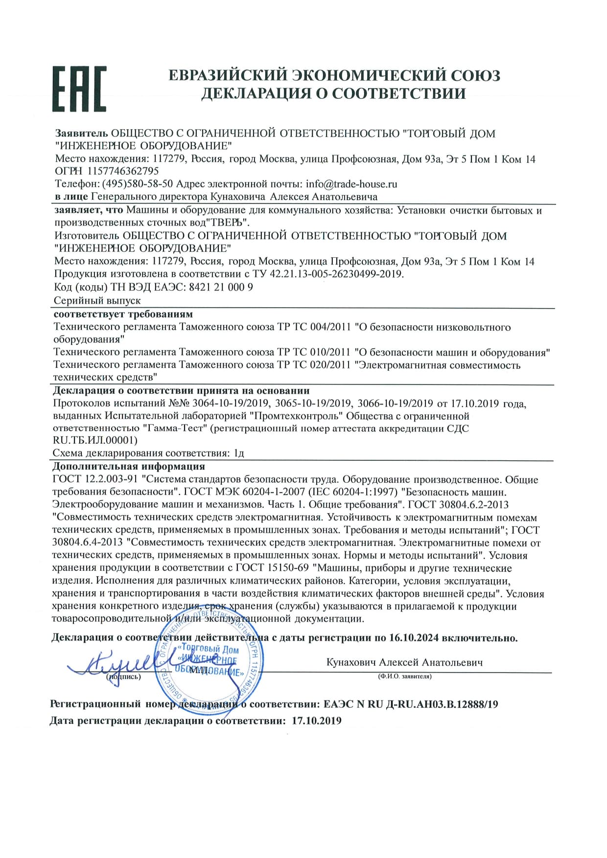 | Тверь Лайт 1 | до 5 человек | 240 л | самотечный | 1 м3/сут | 105 кг |