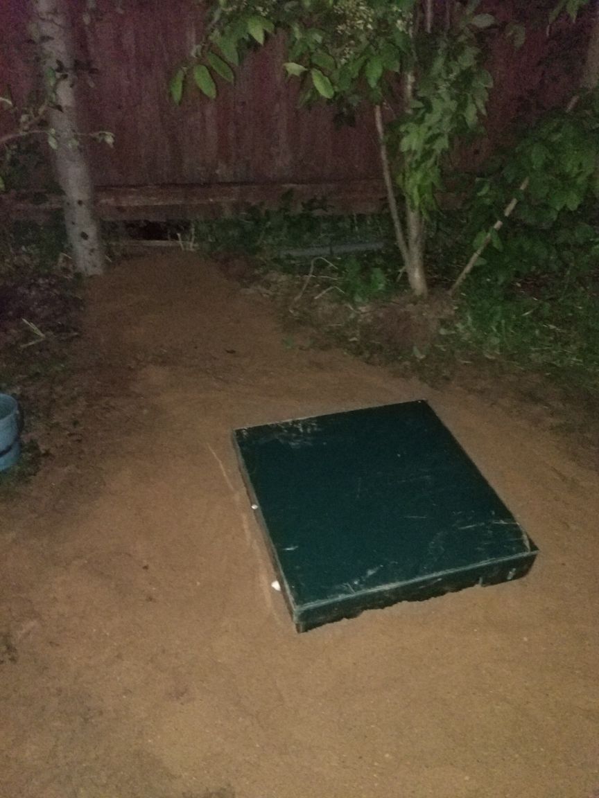 Рытье котлована с размерами: диаметр – диаметр септика + 0,7 м, глубина – высота септика + 0,2 м под песчаную подушку.