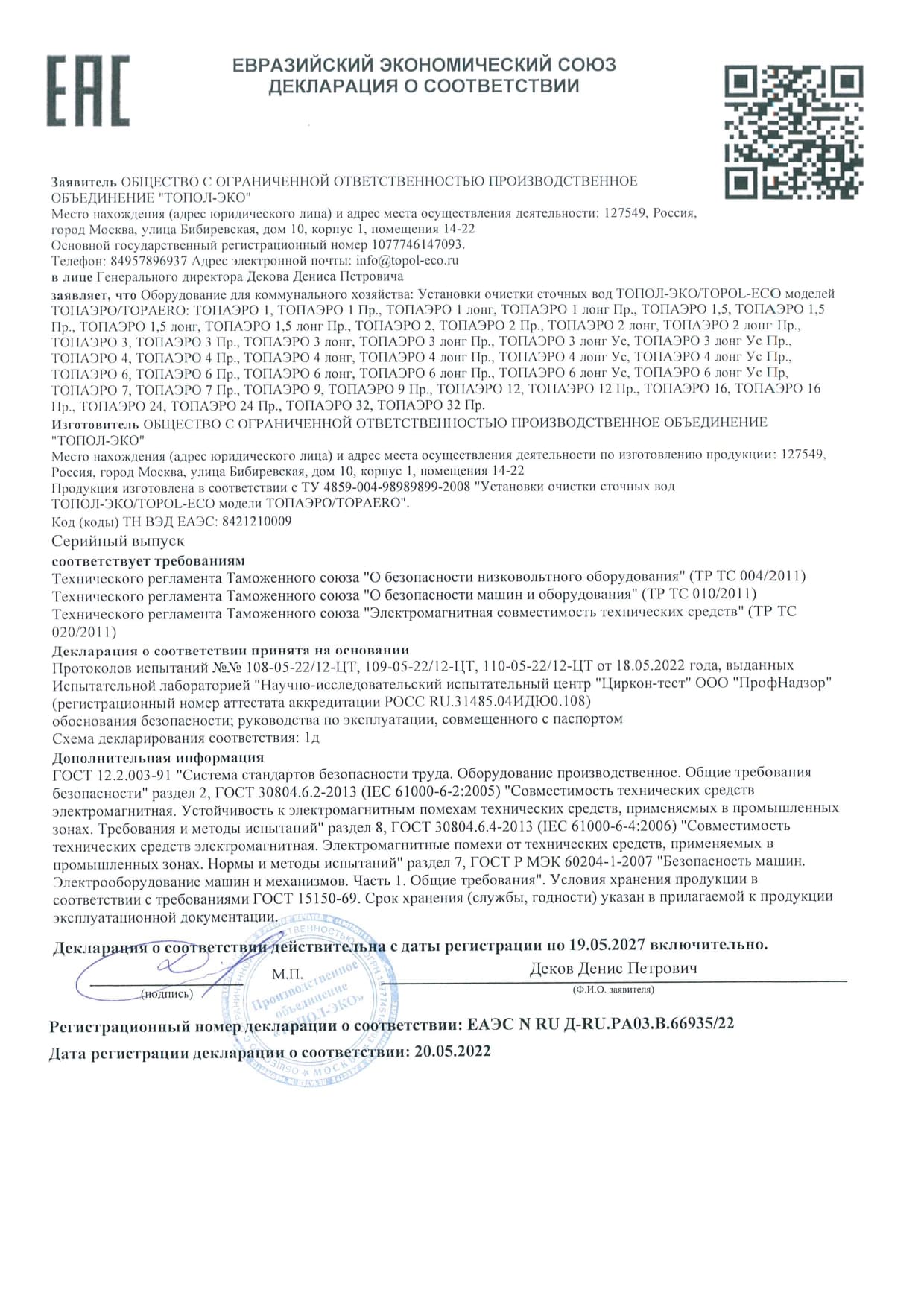 | Топаэро 6 Long Пр | до 30 человек | 1300 л | принудительный | 6 м3/сут | 820 кг |