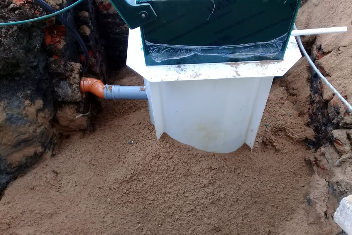 - Обратная засыпка котлована осуществляется с послойным уплотнением и проливом водой каждого слоя до уровня, подведенной к установки канализационной трубы.